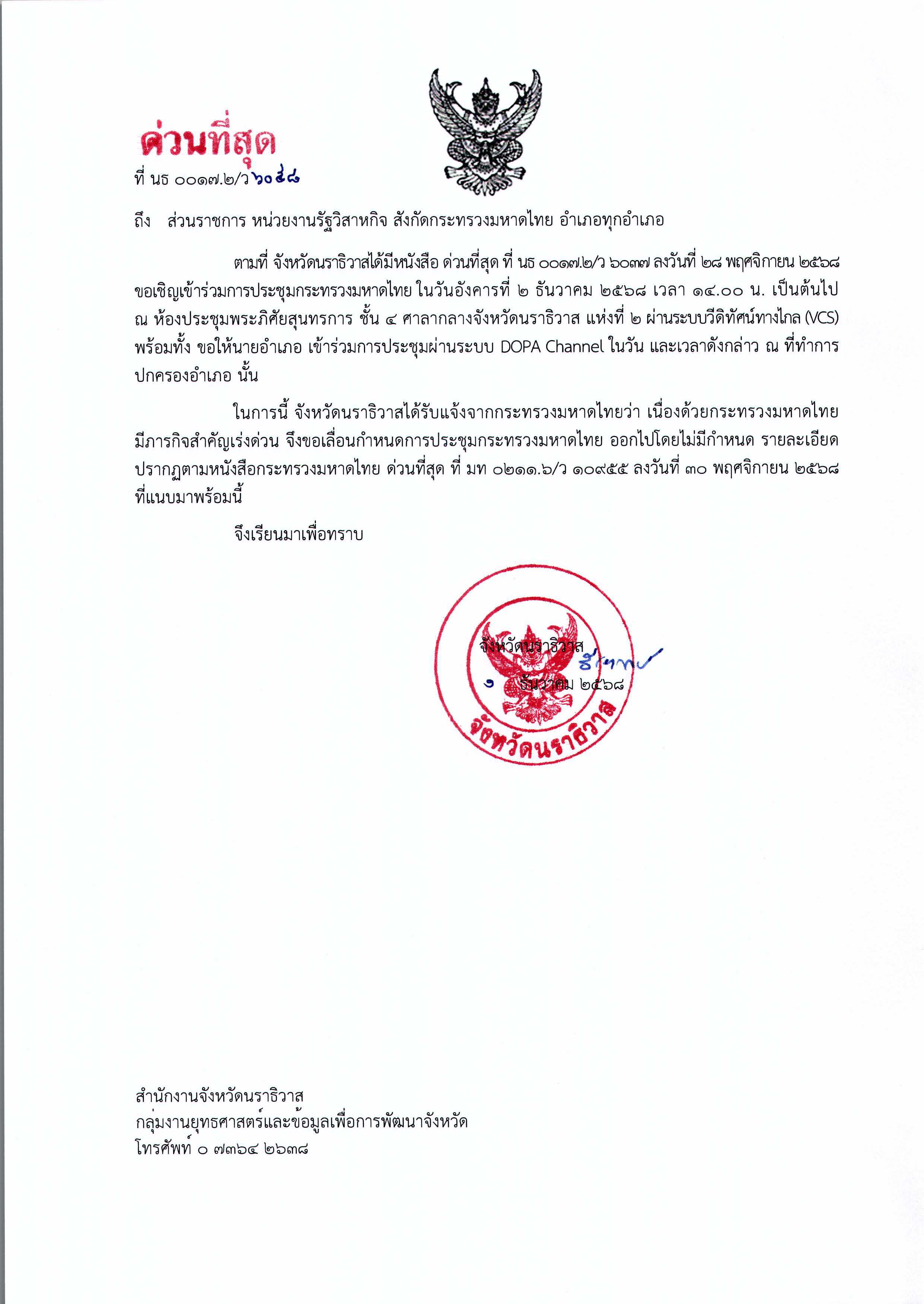 ขอเลื่อนกำหนดการประชุมกระทรวงมหาดไทย
